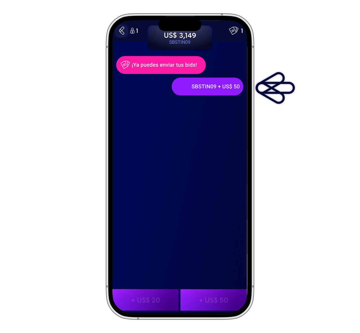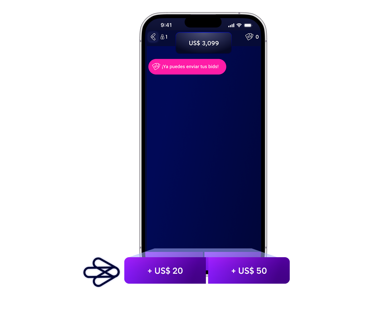 A darle tap a Hacer una oferta se abrirá la sala de subasta. Ahí puedes seleccionar el monto a ofertar de las dos opciones disponibles.