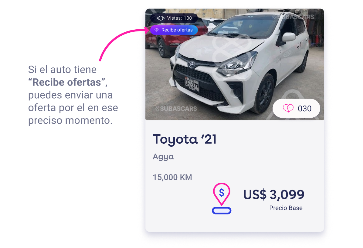 Explora el catálogo de vehículos en subasta, verás que muestran la etiqueta: Recibe Ofertas.