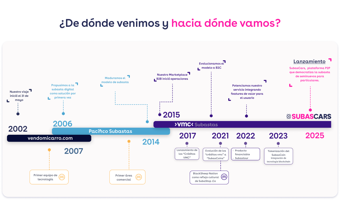 La historia de SubasTop resume 20 años de innovación en el mercado de autos seminuevos en Perú. De VendoMiCarro.com a SubasCars.com, construimos un modelo basado en confianza y subastas digitales que generan experiencias win-win-win para todos.
